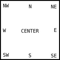 The Tkinter module defines a number of anchor constants that you can use to control where items are positioned relative to their context. For example, anchors can specify where a widget is located inside a frame when the frame is bigger than the widget.
