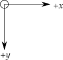 As in most contemporary display systems, the origin of each coordinate system is at its upper left corner, with the x coordinate increasing toward the right, and the y coordinate increasing toward the bottom: